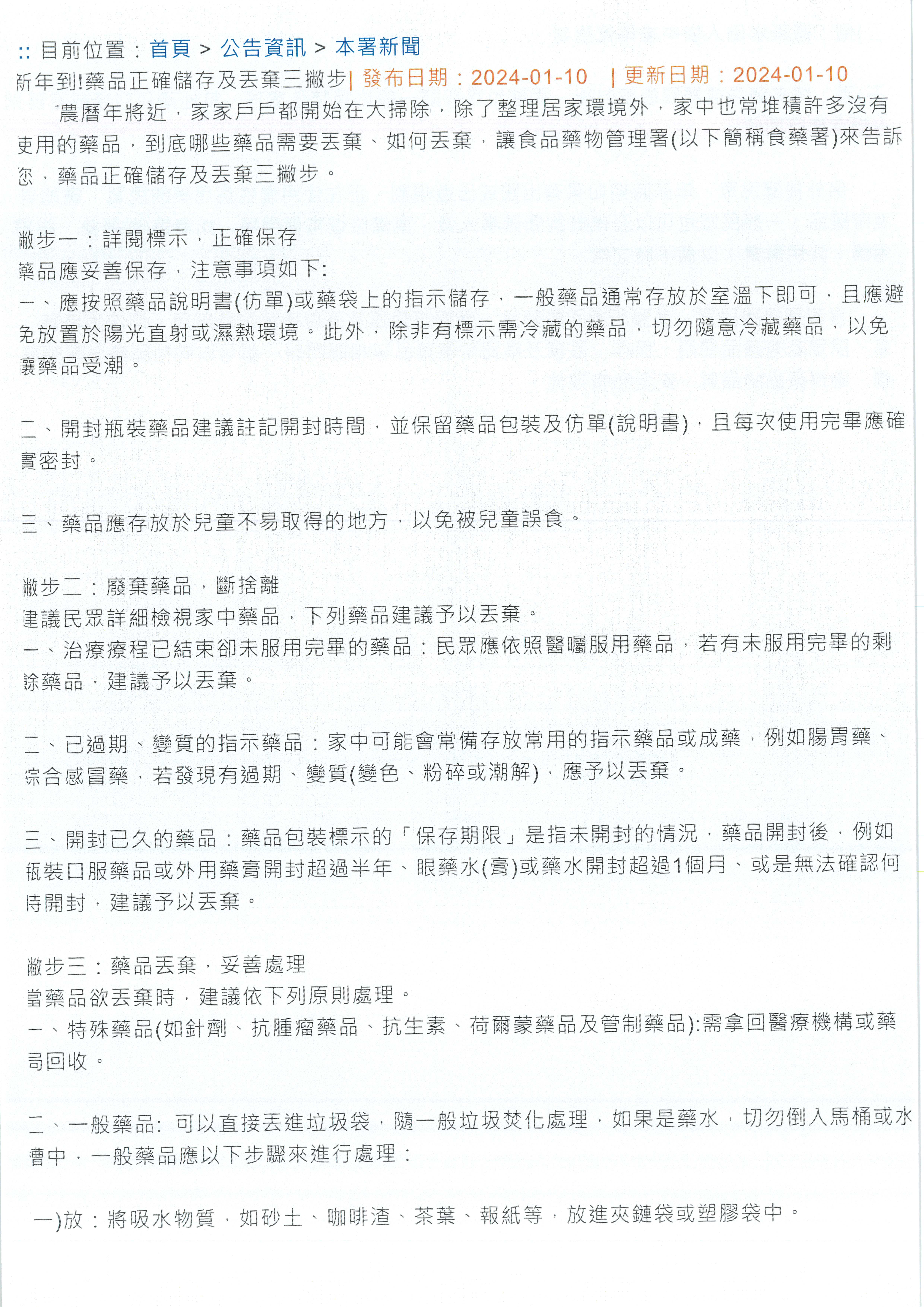 過期廢棄藥品處理事宜衛教單張供參最後更新時間:115/04/05發佈時間:114/09/25
