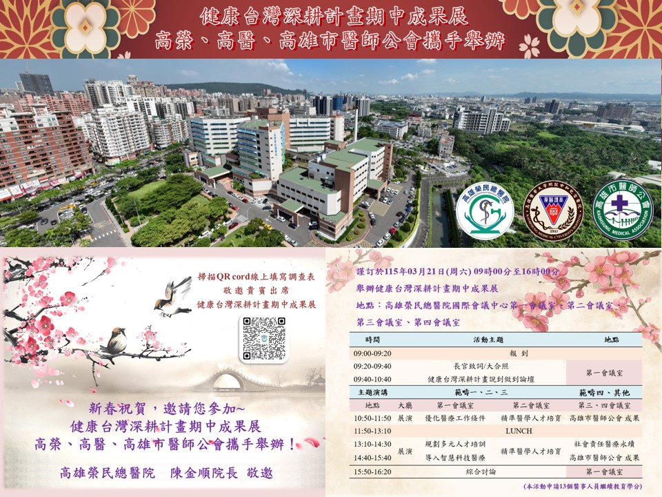 高雄榮總、高醫、高雄市醫師公會「健康台灣深耕計畫期中成果展」最後更新時間:115/03/22發佈時間:115/03/06