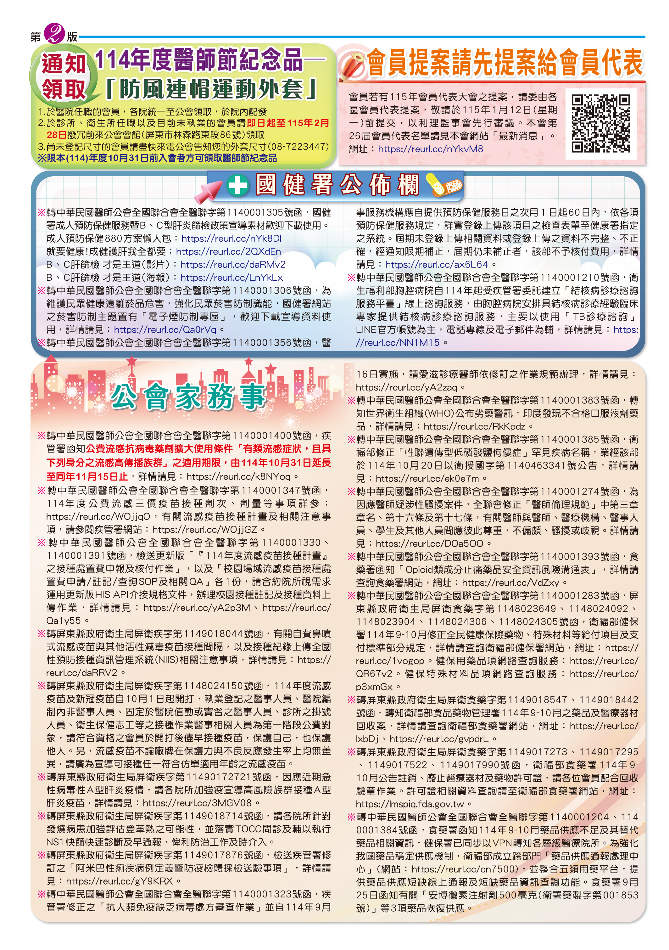 公會會訊--114年11月最後更新時間:114/11/18發佈時間:114/11/07